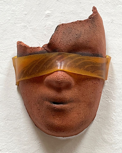 clay, oxides, resin with drawing 6.5" x 5" x 3.5" 2023