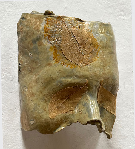 clay with glaze, dried leaves 5.5" x 4.5" x 3.5" 2023