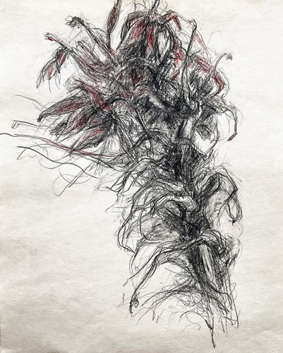 graphite, charcoal, colored pencil on paper 12.5" x 11.5" 2023