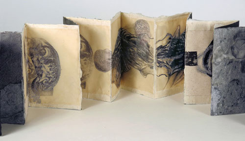 graphite, transfers, stamps, hand made paper, collage