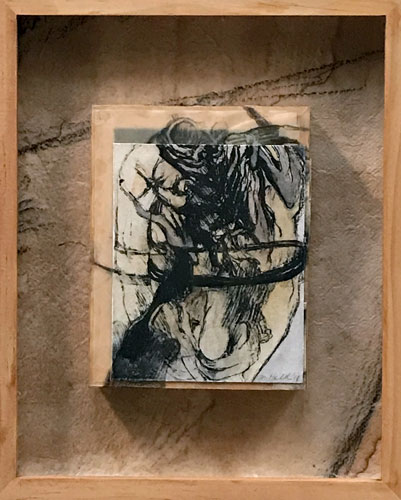 solar print, collage, charcoal, graphite, wood 9" x 11"