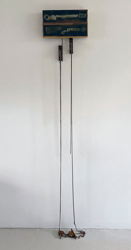 ceramic, wood, screen, chain, window sashes 67.5" x 15" x 5" 2023
