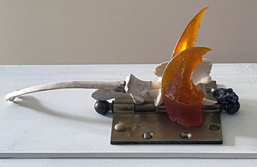 cast resin, animal bones, ceramic with glaze, pebbles 5" x 5" x 13.5" 2020