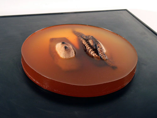 cast resin, ceramic, steel table with illumination 44" x 24.5" x 24.5"