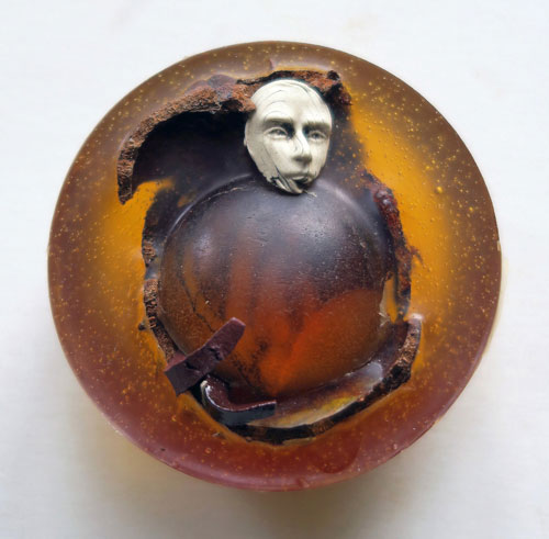 cast resin, seed pod, ceramic cones, cufflink 3" x 1.5" H 2021